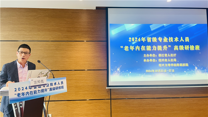 10月25日至27日,由我院老年醫(yī)學(xué)科首席專家俞建洪申請(qǐng)并立項(xiàng),并由我院承辦的2024年浙江省省級(jí)專業(yè)技術(shù)人才“老年內(nèi)在能力提升”高級(jí)研修班在紹興戴斯精選溫德姆酒店順利開班。此次高級(jí)研修班被列入2024年省級(jí)資助項(xiàng)目(浙人社辦發(fā)〔2024〕9號(hào))。來自杭州、嘉興等全省各地的基層醫(yī)療衛(wèi)生服務(wù)機(jī)構(gòu)、養(yǎng)老機(jī)構(gòu)等相關(guān)行業(yè)的高級(jí)專業(yè)技術(shù)人員及中高層管理人員共60余人齊聚一堂,共同參與此次研修班。