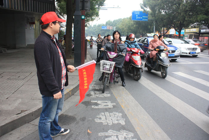 每次看到騎電動車和自行車的市民出現(xiàn)逆行、邊騎車邊打電話的危險行為時,志愿者們都會走上前去耐心說服他們及時糾正不文明的交通行為,他們用真誠文明的話語和實際行動來引導(dǎo)市民安全出行、文明出行,同時也為營造有序、安全、文明、和諧的道路交通環(huán)境和全國文明城市的創(chuàng)建貢獻出自己的一份力量。