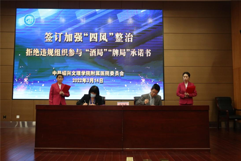 會上,院領導與相關職能科室負責人、支部書記分別簽訂了2022年度黨風廉政建設和行風建設責任書、基層黨建與意識形態(tài)工作責任書、加強“四風”整治、堅決拒絕違規(guī)組織參與“酒局”“牌局”承諾書。