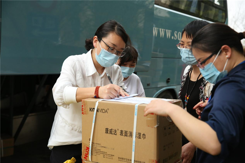 憑借前期豐富的工作經(jīng)驗,醫(yī)院醫(yī)務(wù)處、護理部緊急發(fā)出招募令,迅速調(diào)配人員;設(shè)備處、總務(wù)處快速配備物資?;鹚夙憫?yīng)、立即行動,配合默契、工作高效。釘釘工作群上“收到!”“馬上到!”“我去”......接令聲堅定干脆。下午4:30,50人組成的核酸采樣隊伍集結(jié)完畢,迅速出發(fā)馳援嘉興。