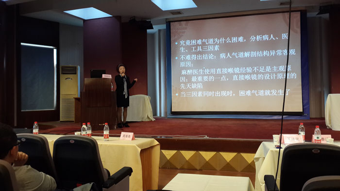 最后的課程是樓靜芝主任就《可視喉鏡在困難氣道研究新進展》進行了專題講座。講座中,樓主任用通俗易懂的語言講解了困難氣道的定義、困難氣道的評估、處理困難氣道的基本準備、困難氣道的處理流程、氣道管理工具,緊急氣道的管理等等,特別是對困難氣道處理技術(shù)進行了詳細的講解,圖文并茂的講述使學員易于理解記憶。