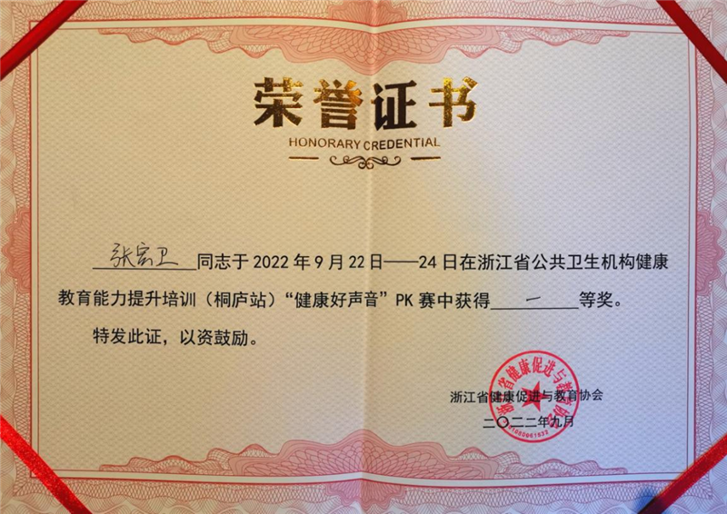 為持續(xù)推動健康知識普及行動,提高全省各級公共衛(wèi)生機構(gòu)和醫(yī)療單位工作人員健康教育和健康科普傳播能力,近期,浙江省健康促進(jìn)與教育協(xié)會啟動了省公共衛(wèi)生機構(gòu)健康教育能力提升項目。其中,我院副院長張宏衛(wèi)參加了9月22日-24日在杭州桐廬舉辦的第一期集訓(xùn)。